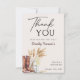 Cette carte de remerciement Boots and Bubbly Boho pour une fête de mariage est le moyen idéal pour montrer votre appréciation après une fête de mariage champêtre amusante. Avec des bottes de cowboy peintes à l'aquarelle, des flûtes à champagne et de l'herbe de pampa, elle capture le charme d'une célébration rustique et western. Le thème des bottes et des bulles ajoute une touche ludique, ce qui la rend idéale pour toute future mariée cowgirl. Son design doux et bohème dégage de la chaleur et de l'élégance, parfait pour remercier vos invités avec style. Complétez votre fête de mariage avec ces cartes de remerciement sincères — commandez dès aujourd'hui !