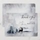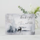 Carte de remerciement avec une image aquarelle représentant un renne en silhouette noire debout parmi des pins. Palette de couleurs neutres gris, noir et blanc.