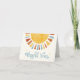 Cette carte de charme présente un design boho adorable avec un soleil aquarelle, dressé contre un arrière - plan blanc vintage doux. Les couleurs muettes du jaune, de l'orange et du bleu, associées à la police rétro, créent une ambiance nostalgique. Personnalisez la carte avec votre propre message pour remercier vos invités pour leur amour et leur soutien.