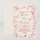 Ce thème rétro rouge de remerciement pour enterrement de vie de jeune fille de la Saint-Valentin apporte une ambiance chaleureuse et dynamique à toute célébration. Les flèches dessinées à la main, les nœuds, les cœurs et les croquis de champagne lui donnent une énergie de Galentine ludique tout en restant élégants. La mise en page laisse de l'espace pour les noms des invités et de courtes notes, parfait pour rassembler l'ensemble du thème. Toutes les couleurs peuvent être modifiées pour correspondre à votre thème.