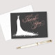 Cartes de remerciement élégantes pour la douche de mariage ou le mariage pour la future mariée stylée avec une police de calligraphie ornée et une robe de mariée fluide. Les détails de la volute, de la fleur et du papillon accentuent la robe éthérée. Le format de carte pliée comprend un espace à l'intérieur pour un message manuscrit. Les couleurs du design incluent le blanc, le rose blush / corail et le noir charbon.