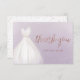 Elégante carte de remerciement avec robe crème d'aquarelle avec parties scintillant en or faux rose brillant de remerciement script sur arrière - plan mauve doux.