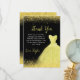 Une belle robe d'aquarelle jaune vif sur un arrière - plan noir avec fausse parties scintillant en haut et en bas de la carte. Tout le texte peut être personnalisé selon vos besoins.