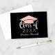 Diplôme personnalisé merci cartes de notes un arrière - plan noir (peut être customisé) avec style et tendance or rose / rose et blanc rousse "Classe de 2023" conception de script de calligraphie avec grand casquette et nom de diplômé dans le script moderne.