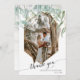 "Carte de remerciement photo simple moderne géométrique à motif de feuilles dorées rose." Le feuillage de feuilles d'eucalyptus vertes pend au-dessus d'un cadre en paillettes dorées rose doux. Une belle police de calligraphie script, "merci" et vos noms avec votre date de mariage (ou d'autres informations) sont facilement personnalisables. Au verso, on retrouve le même feuillage de feuilles vertes et un fond en bois de cottage blanc doux qui vous permet d'écrire à la main votre message personnel. Œuvre peinte et conçue graphiquement par l'artiste et designer sous licence internationale, Audrey Jeanne Roberts, copyright.