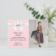 Cette carte de remerciement de fête élégante rose Tiffany est la papeterie parfaite pour chaque âme bourgeoise. Utilisez les produits de cette collection pour une fête d'anniversaire, un événement promotionnel, un sweet sixteen, un anniversaire de mariage, une douche de mariée, un petit déjeuner dans un restaurant élégant ou toute fête marquant un événement important avec une esthétique luxueuse. Le rose saumon, le blanc et le noir se combinent pour un thème élégant parfait pour toute femme, fille ou adolescente avant-gardiste. Il suffit d'ajouter votre photo et de personnaliser le texte !