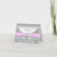 Élégant ruban en satin rose imprimé avec centre diamant et carte de remerciements en dentelle en diamant argenté.