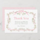 Cette carte de remerciement plate pour 1er anniversaire comporte un cadre floral à fleurs roses et vertes orné de papillons et de rubans. Pour une personnalisation avancée de ce design, veuillez cliquer sur le BOUTON OUTIL DE DESIGN BLEU ci-dessus !