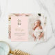 Ces belles cartes de remerciement Baptême ou Christening rose présentent un magnifique bouquet de jolies roses et de feuilles de fougères vertes sur une croix rose assortie. La typographie de script en or Faux est également présentée, et vous pouvez ajouter la photo de votre bébé. L'arrière de la carte a un joli gros plan de fleurs plus roses pour un look floral délicat et féminin.