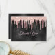 Carte De Remerciements Rouge rose chic paillettes noires monogramme qui d