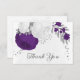 Fleurs royales romantiques violettes & blanches avec carte de remerciements mariage botanique feuille argent. Les détails de la parties scintillant sont simulés.