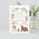 Sweet gender neutral woodland animals themed baby shower thank you card featuring various woodland animals, butterflies, bow and wreath.