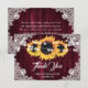 Carte De Remerciements Rustic Sunflower Wood Floral Lace Burgundy Wedding