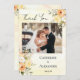Express gratitude à la famille et aux amis pour avoir partagé dans votre journée spéciale, avec ce classique carte de remerciements mariage. La carte présente un design boho rustique de roses jaunes, pêche et blanches dans un style aquarelle. Personnalisez le texte avec vos noms, date mariage, photo et message pour les touches de finition.