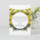 Ce design présente des fleurs d'acacia jaune de wattle rustique originaires d'Australie. Les fleurs jaunes de bataille australienne ont encadré la date mariage. Les tons jaunes des fleurs de bétail et sa verdure créent une atmosphère rustique fleurie de jardin de campagne. L'envers est orné d'une couronne de wattle florale encerclant le message de remerciement. Conception de cartes de remerciements mariages rustiques avec des éléments modernes. Des invitations de mariage et d'autres articles de papeterie sont également disponibles.