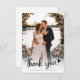 Montrez votre appréciation à vos proches avec ce script lettering, carte de remerciements mariage personnalisé. Cette carte comporte une belle photo mariage et un message sincère que vous pouvez customiser. Que vous souhaitiez remercier vos invités d'avoir assisté à votre mariage, d'avoir envoyé un cadeau ou de faire partie de votre fête de mariage, cette carte leur fera sentir chéri et se souvenir