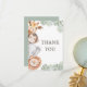 Envoyez un doux mot de gratitude après la célébration jungle de votre petit avec cette carte de remerciement Wild One Safari. Avec des animaux de safari ludiques comme un lion, une girafe et un éléphant entourés de verdure, cette carte est parfaite pour remercier les amis et la famille qui ont rejoint l'aventure. Personnalisez avec votre message pour en faire un souvenir mémorable du premier anniversaire spécial.