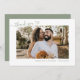 Sage Green Boho Simple Photo Heart Script Mariage Carte de remerciements