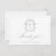 Cette élégante Carte de remerciements de Mariage Monogram Sage Green Crest, de style baroque vintage, est ornée d'un cadre délicat, d'une crête monographique et d'une élégante calligraphie.