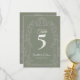 Elegant Sage Green Ornate Arch Botanical Wedding Table Number Card.