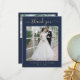 Carte De Remerciements Script Blue Elegant 2 Mariage photo Gold Script
