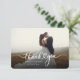 Une façon géniale et réfléchie de remercier vos amis, votre famille et vos collègues qui vous ont honoré de leur présence le jour de votre mariage avec cette photo minimaliste moderne, cartes de remerciement avec script écrit "merci" et un coeur d'amour.