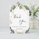 Un carte de remerciements pour un 50ème anniversaire (ou tout âge). Un arrière - plan blanc chic décoré de végétation eucalyptus et de poussière de parties scintillant en faux or. Sur l'avant, un grand script en lettres de couleur noire et le texte : Merci, votre texte, titre et une date. Retour : Personnalisez et ajoutez Votre note de remerciement et votre nom.