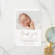 Ce carte de remerciements de baptême bébé photo moderne comporte un script de calligraphie écrit à la main, merci l'art qui est mobile et que vous pouvez facilement changer la couleur de, une photo horizontale et le texte modifiable. Cliquez sur le bouton Modifier pour customiser cette conception.