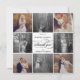 Express votre gratitude avec ce design mariage romantique avec un script classique et un montage de 8 photos. Personnalisez avec vos photos, noms et date mariages préférés pour créer un souvenir inoubliable pour vos invités. Script Noir Classique Romantique, Calligraphie Et Typographie Moderne, 8 Photo Collage Mariage Carte de remerciements. Ce design moderne en noir et blanc présente 8 de vos meilleures photos mariages dans un cadre carré en grille blanche avec un script classique en noir au centre de la calligraphie "merci" élégant et élégant. Conçu par fat*fa*tin. —
