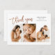 Ce carte de remerciements photo moderne de 3 est doté d'une écriture manuscrite en or rose, merci et détails de naissance sur le devant. Le dos comprend un message de remerciement et la signature de la famille. Cliquez sur le bouton Modifier pour customiser cette conception avec vos photos et détails.