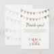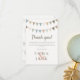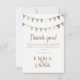 Express votre gratitude dans le style avec ce mariage contemporain note de remerciement, avec une carte de bannière de bunting pastel fantaisie comme point focal. La palette douce bleu poussiéreux et pêche, associée à une palette de couleurs chaudes muettes, apporte une esthétique moderne minimale à la carte. Le style de baby shower boho vintage rencontre une carte de célébration extérieure rustique, créant un joli joyeux article de papeterie mariage qui est à la fois joyeux et sincère. Une esperluette classique rejoint les noms du couple, correspondant à votre suite d'invitation de coordination et ajoutant un charme particulier. Cette carte est parfaite pour apprécier vos invités tout en conservant un thème mariage cohésif, joyeux et élégant.