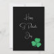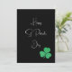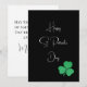 Avant : Design moderne en shamrock de trèfle irlandais noir et vert personnalisable avec votre propre message. Carte postale de la Saint Patrick pour les voeux de vacances. Cette carte vierge est idéale pour les invitations, les fêtes familiales traditionnelles irlandaises, les événements familiaux printaniers, les ventes et les événements VIP pour votre restaurant familial, pub ou affaires. Retour : Vide