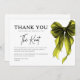 The minimalist green-and-white design reflects today’s most popular bow-themed and modern bridal aesthetics, making it easy to coordinate with your shower décor, invitations, signage, and tableware. Thoughtfully styled and easy to personalize, this thank you card feels refined, heartfelt, and effortlessly elegant.