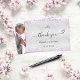 Un carte de remerciements mariage. Une couleur arrière - plan à l'aspect métallique faux argenté. Avec des étincelles de parties scintillant violet. Sur le devant, un script écrit à grande main et le texte : Merci, vos initiales monographiques, les noms et une date. Retour : personnalisez et ajoutez votre photo mariage, merci note et noms.