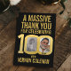 100th birthday two photos bold and simple gold on black thank you card . Great idea for adding some stylish simple thanks to your 100th birthday party favor bags. Personalize with your own two photos in the 00 of 100. Can be personalized with your own name and wording, currently reads A massive thank you for celebrating 100 years with Vernon Coleman. Other matching items are available and can be created by request. Unique gold 100 graphic by www.mylittleeden.com