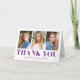 Carte de remerciements de graduation simple avec les 3 photos de l'étudiant sur le devant avec "Merci" affiché en caractères violets gras. Personnalisez le carte de remerciements de remise de diplômes photo en ajoutant le nom du diplômé, le nom de l'école et l'année de remise de diplômes. L'intérieur de la carte offre de l'espace pour votre message de remerciement dactylographié ou manuscrit.