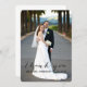 Style vertical. Cartes simples de Merci de mariage de photo de recouvrement de manuscrit d'écriture. Concevez par Elke que Clarke© pour MonogramGallery a imprimée par Zazzle. Envoyez votre mariage vous remercient message comme l'épouse nouvellement à vos amis et la famille utilisant ceci admirablement, carte de remerciements simple avec les mots "vous remercient" écrits dans un recouvrement noir des textes de manuscrit de typographie d'écriture. Remplacez la photo témoin par vos propres. Ajoutez votre personnel vous remercient message sur le dos ou laissent le blanc et la main écrivent votre message en personne. Autre colore disponible.