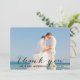 Cartes simples de Merci de mariage de photo de recouvrement de manuscrit d'écriture. Concevez par Elke que Clarke© pour MonogramGallery a imprimée par Zazzle. Envoyez votre mariage vous remercient message comme l'épouse nouvellement à vos amis et la famille utilisant ceci admirablement, carte de remerciements simple avec les mots "vous remercient" écrits dans un recouvrement noir des textes de manuscrit de typographie d'écriture. Remplacez la photo témoin par vos propres. Ajoutez votre personnel vous remercient message sur le dos ou laissent le blanc et la main écrivent votre message en personne. Autre colore disponible.