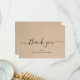 Carte de remerciements d'affaires plat rustique avec "merci" avec des swashes dans une police de caractères manuscrite élégante avec votre nom d'entreprise sur un arrière - plan de papier brun. Le côté arrière a votre message personnalisé. Ce design simple et féminin est idéal pour une entreprise artisanale artisanale.
