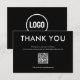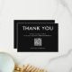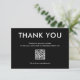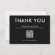 Simple et élégante carte de remerciements noire et blanche. Texte personnalisable pour les entreprises pour remercier leurs clients. Code QR et espace pour votre logo.