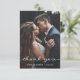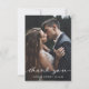 Cet élégant carte de remerciements de mariage est moderne et minimaliste, mais a également une atmosphère vintage charmante. Un script de calligraphie blanc chic orne l'avant, avec votre photo de mariage préférée, et une photo supplémentaire se trouve à l'arrière avec votre propre message personnel à vos invités.