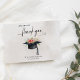 A clean and modern graduation party thank you card. The front features an elegant abstract watercolor background. Soft pale gray and beige tones add a gentle touch, creating a polished and stylish card for show you appreciation to celebrating this special milestone with you. A beautiful watercolor illustration of a student cap with black tassel, pretty flowers and green leaves.