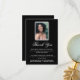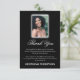 Carte de remerciement funéraire avec un fond noir classique, une photo de votre proche et un modèle de reconnaissance de sympathie personnalisable facilement modifiable.