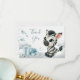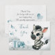 Carte de remerciement mignonne avec un petit zèbre mâle adorable et des cœurs d'amour bleus assis sur des nuages