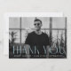 Carte de remerciements de graduation simple avec photo horizontale du diplômé avec "Merci" affiché en bleu ciel, lettres art déco moderne. Personnalisez le devant du carte de remerciements de remise de diplômes en y ajoutant le nom du diplômé, le nom de l'école et l'année de remise de diplômes. La carte inverse pour afficher votre message de remerciement personnalisé en lettres noires ou laisser le dos vide pour écrire la vôtre !