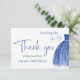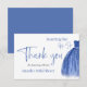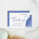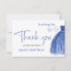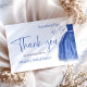 Élégante carte de remerciement pour Baby Shower sur le thème Something Blue avec une robe bleue et une citation en écriture calligraphique.
