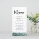 Cet ordre de service du programme de mariage comprend des eaux océaniques aquarelles et des palmiers avec une police manuscrite pointue. Utilisez ce programme pour détailler la chronologie du jour de mariage, le bios de la fête de la mariée et une note de remerciement spéciale. Ce programme est parfait pour une fête de mariage sur une île tropicale.