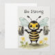 dessin d'une petite abeille mignonne soulevant des haltères entourée de fleurs. Sois fort