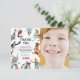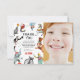 Carte de remerciement photo d'anniversaire à thème cirque vintage moderne. Le design présente une photographie de l'enfant qui fête son anniversaire, avec des illustrations aquarelles vintage d'actes de cirque ! Le message de remerciement est facile à personnaliser en utilisant le modèle fourni.