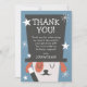 Une carte de remerciement mignonne pour que votre enfant l'envoie à ses amis et à sa famille après leur fête d'anniversaire et les cadeaux. Le thème de la carte est "spectacle de magie" avec un magicien chien portant un chapeau haut-de-forme et tenant une baguette magique. Il a même une moustache mignonne sur son visage. Les textes modifiables sont à l'intérieur de son chapeau noir. Il y a des étoiles autour de lui. Idéal pour l'anniversaire d'un tout-petit ou d'un jeune garçon.